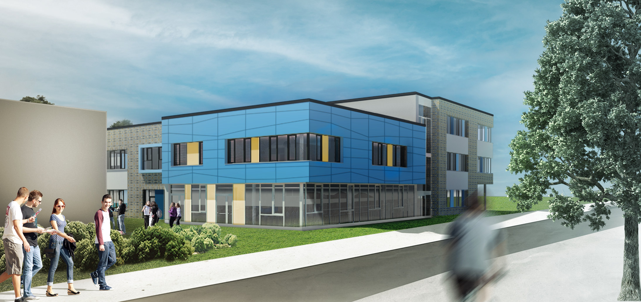 Auf einer Wiesenfläche in der Nähe des Stadtzentrums entsteht die neue Oberschule der Stadt Rothenburg/Oberlausitz. Gemeinsam mit der vorhandenen alten Sporthalle, der Grundschule und dem Hort sowie der neu geplanten Sport- und Mehrzweckhalle wird ein innerstädtischer Campus für Schulbildung entwickelt. Der geplante Schulneubau gliedert sich in mehrere Gebäudeteile, die durch ihre unterschiedlichen Funktionen differenziertes Lernen ermöglichen.